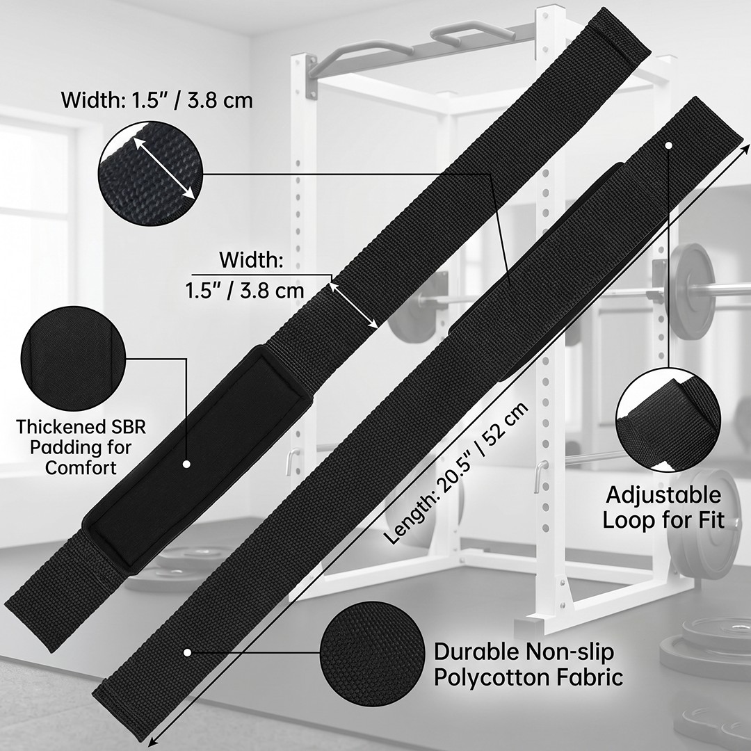 Anti-Slip Texture: The heavy-duty woven fabric ensures the strap bites into the knurling of the bar and won't slip mid-lift.